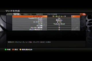 左はオンライン時における、自分でレースを設定している画面。非常に細かくルール設定を行うことができます。