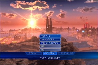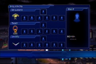 左側はゲームモード選択の画面。選べるゲームモードはキャンペーンとタイムトライアルの二つだけと少し少なめ。ただし、それそれでLiveやシステムリンクを使った二人プレイが楽しめる。右側はタイムトライアルを選択した場合の画面。まだ対象となる中ボス以上の敵を見つけていない状態のため、事実上遊ぶことが出来ない状態。ただ、普通にプレイすれば直ぐに幾つかの敵が選べるようになる。